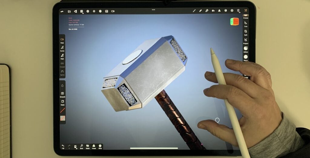 I am just beginning to see the potential and the limitations of the app. One thing that is bugging me is that there’s no precision when you want to do … well, precision things! There’s no way you can be accurate, all dimensions, angles etc are approximate. This is expected, since Nomad Sculpt is a sculpting app (obviously, hence the name) not a design app. The problem rises when you want to sculpt something that is more on the design side, something more geometrical. Just like a hammer! In that case, you need to improvise and pray for the best. Or maybe add a 3D design app to your workflow. (If I do, I’ll let you know!)