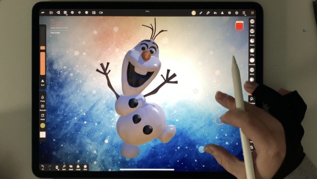 And today’s work is (drumroll please!) Olaf from Frozen. My main personality trait and my one and only superpower is that I never give up. On day 3 of this challenge I attempted to sculpt Olaf, with hilarious results. Back then, I had no idea how difficult working on 3D is, for some reason I thought I would nail Olaf, even though it was my third day working on nomad sculpt app. (Now I’m nine days in, and I sound like an expert, Gosh!) But of course, my ”failure” was bugging me, I could not rest. So today I attempted to sculpt Olaf again, and kinda succeeded. 🙂