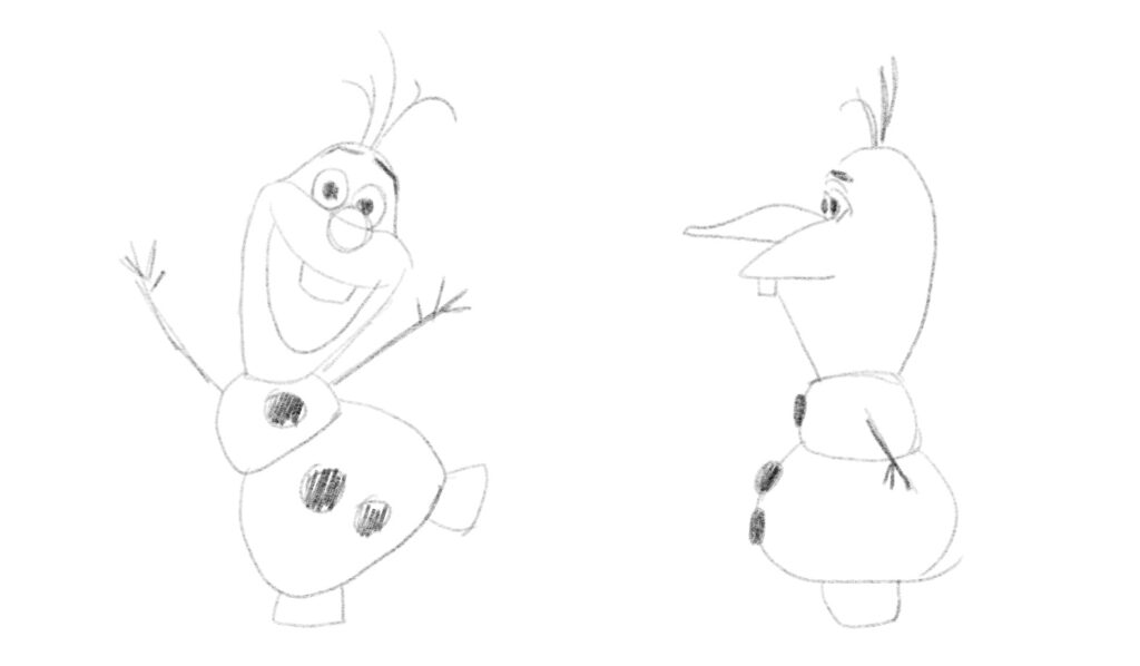 Anyways, today I felt like a professional 3D artist, as I pretty much worked the way professional 3D artists work. (As far as I know, or as far as I researched.) I chose two images of Olaf, one in front view and one in side view, and worked all the way to build the 3D model. I am showing the hand-drawn sketches here, to avoid any possible copyright infringement issues.