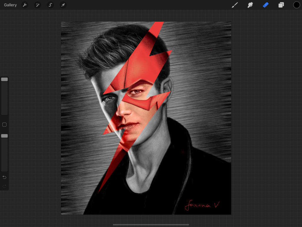 I love to explain things with actual examples, so, here is my latest drawing in procreate. It is actor Grant Gustin as Barry Allen / Flash. Firstly, I painted Grant in black and white, and then I added Flash into the lightning shape. Let’s break down the steps.