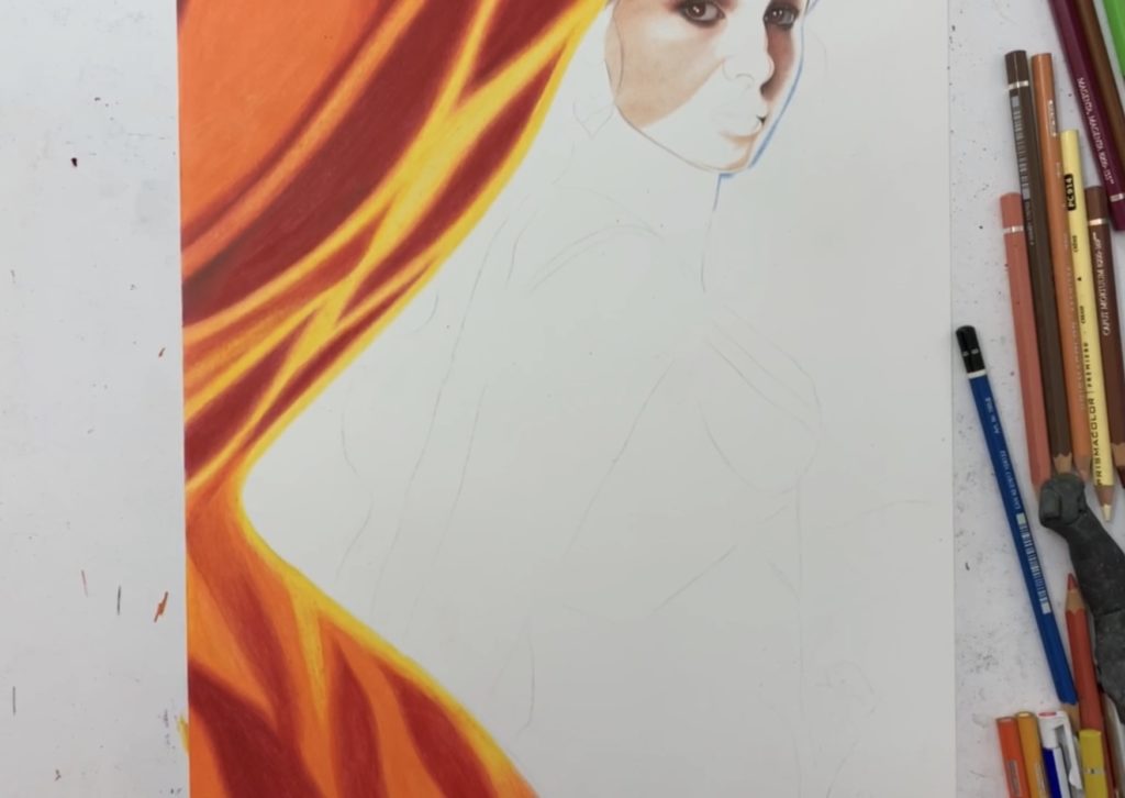 Story of my life: I wanna draw a detailed portrait with a background, but I don’t want to spend countless hours on the background itself. Why? Because I cannot afford spending that many hours (time-wise), because drawing a background is boring and it drives me nuts and because the focal point is the portrait after all. I want to create a FAST, EASY background with colored pencils.