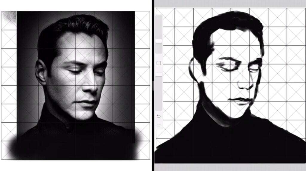 Another popular way to get perfect proportions is to use a grid. A grid is basically a bunch of vertical and horizontal lines (a grid can be expanded so that to include diagonal lines, circles etc) When you use a grid, you basically draw these lines twice, once on your reference photo and once on your sheet of paper. Then you draw on the gridded paper, ensuring (theoretically) that proportions will be ok. I have some experience with the grid method. (I even have an app on my iPad) It is not my favorite, I am way too lazy, and using a grid requires a lot of time and patience. But the main problem with grids is that many things can go wrong. Just a slight deviation from the “perfect” vertical line, can have a huge impact on the final work and your drawing might look “off”. Not to mention that a mistake is so easy to make, you may count incorrectly, or make a wrong estimation. (Of course, all these apply to traditional art, in digital art, grids are made automatically) But I understand that a grid might be necessary in large scale, hypperealistic artworks, so it doesn’t hurt to familiarize yourself with the method if you are serious about art.