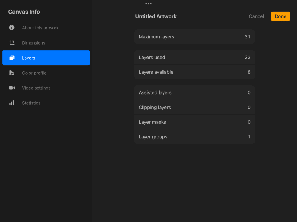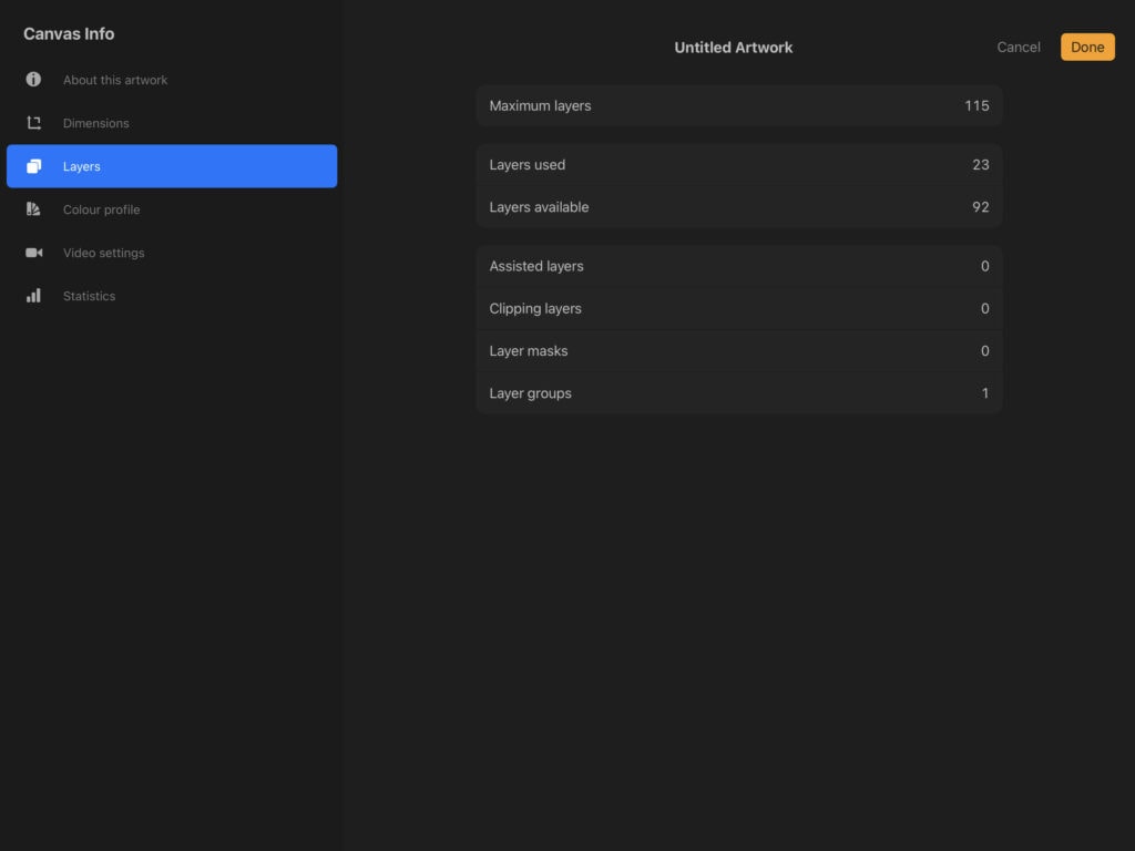 This can be frustrating. I am old enough, so I used to work with photoshop long before procreate was developed. In photoshop there is practically no limit on how many layers one can create. (This is actually not 100% true. I am quoting Adobe here: “You can create up to 8000 layers in an image, each with its own blending mode and opacity. However, memory constraints may lower this limit.”) In procreate, however, there is a considerable limit on how many layers you can create. This limit is not definitive, it depends on the iPad’s specifications and the size the drawing canvas. Below you can see the layer limit for the exact same file on an iPad pro2020 and on an iPad Air 2014. (yep, my iPad 2014 is still functioning!) Canvas size is 2048x2742px.