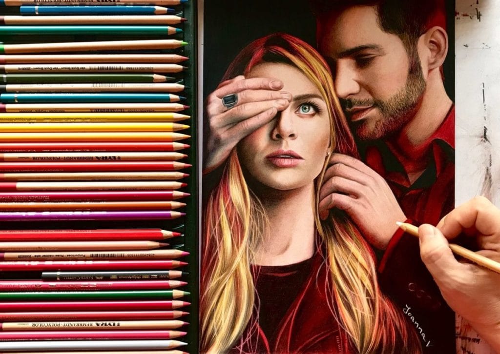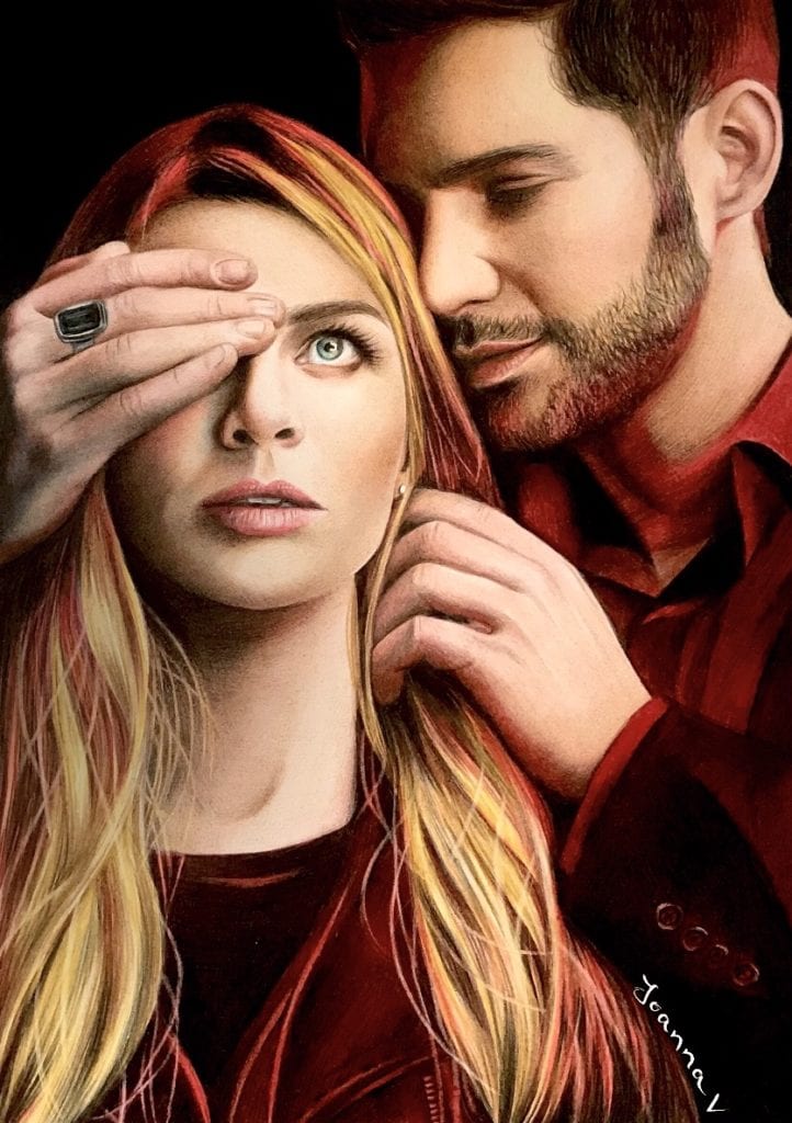 Lucifer was the first series I watched after this 3,5 hiatus and I got soooo hooked and excited, I had to make a drawing of Tom Ellis as Lucifer and Lauren German as Chloe Becker! And an important one too! I got to try Lyra Rembrandt polycolor colored pencils for the first time and I think I found my holy grail pencils. I will write a detailed review after I test them extensively, but for now suffice to say they combine the vibrancy and saturation of prismacolor with the luxury of Faber-Castell polychromos (which were my favorite pencils for many many years. You can check this post for a comparison between the two)