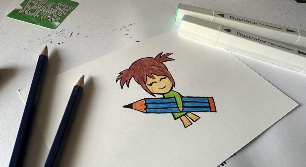 To be honest I had no previous experience with Art boxes. I wonder why. You see, the philosophy behind an art is getting a box of different art materials every month is to try new styles, new brands, new materials which I absolutely love. I love trying new things and art boxes are the perfect excuse to do so! Anyways back to Muse kits Artbox. I kinda expected random materials thrown together, but this was not the case. In fact, I was surprised how well organized the Art box was. Most materials in the box were about cartoon illustration, which was the months theme, and they were chosen to work very well together, for example the paper was the perfect match for the markers – but I will come back to this later. Oh, and apart from the art supplies, the idea is to bring artists of the world together, with special tags, monthly prompts and rewards when a prompt or challenge is finished and shared. How cool is that?