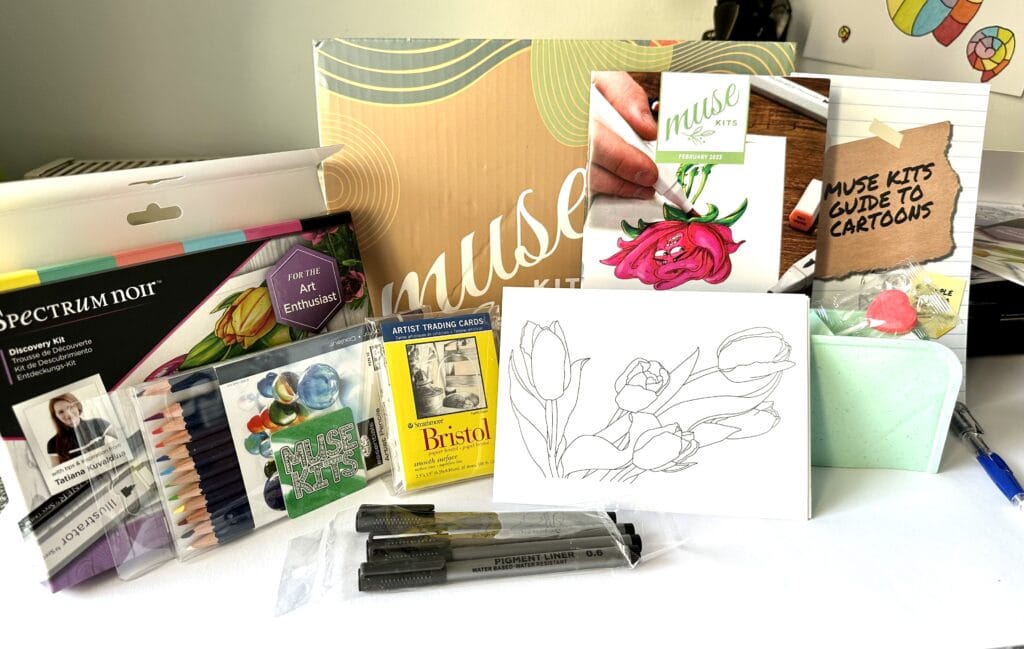 The other day I was sent the February MuseKits Artbox, to try out and review. MuseKits is an Art Subscription Box, each month you receive a box full of different Art supplies.