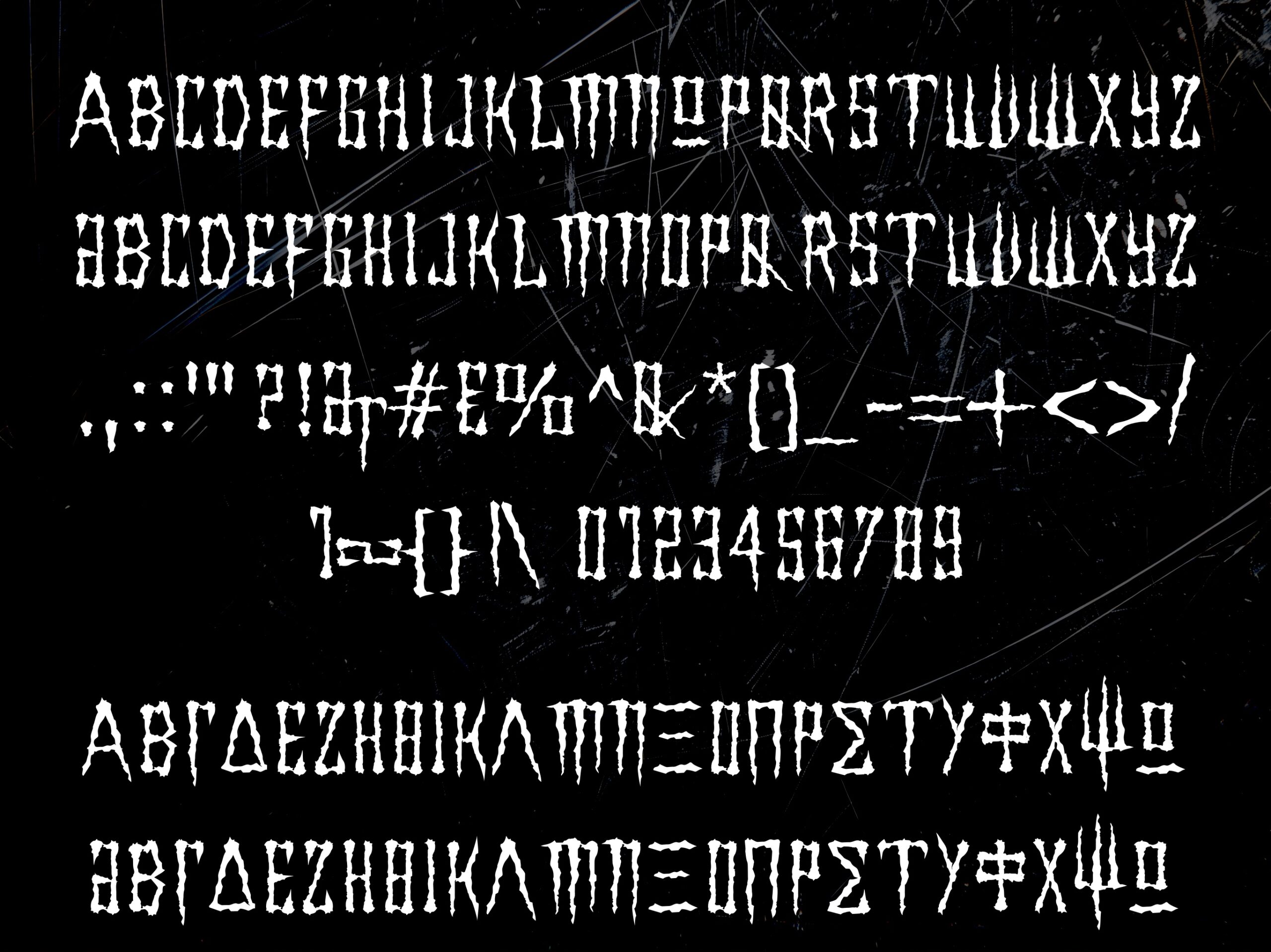 A dark, hand-drawn, gothic font, inspired by Monster energy drinks. Lately I’ve been living off Monsters because normal caffeine doesn’t have any effect on me any more… Includes numbers, special characters and Greek letters.