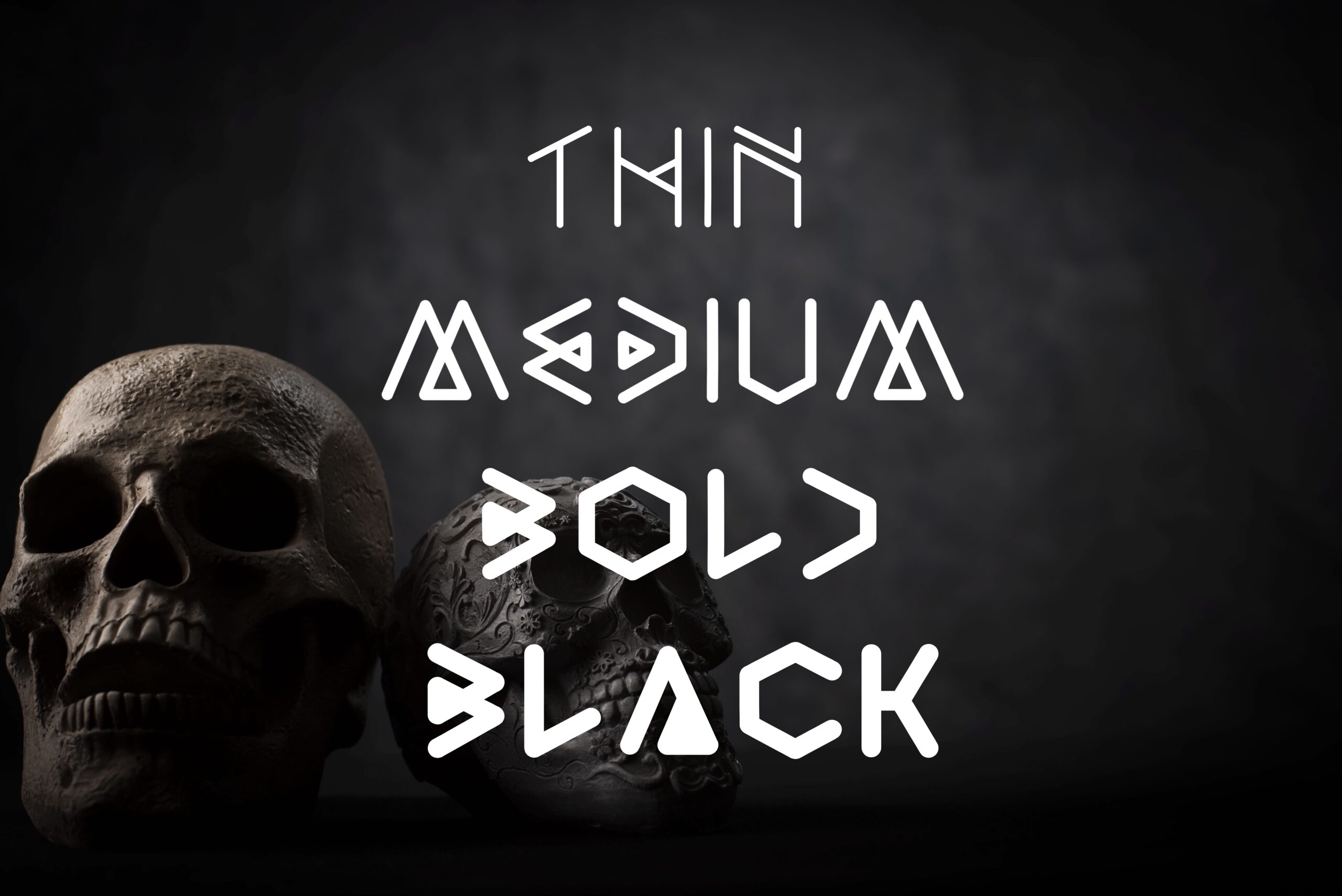 A spooky, runic-y, witchy font, inspired by magic, mystery and the occult in general. Paranormal is a geometric, decorative font that comes in four weights.