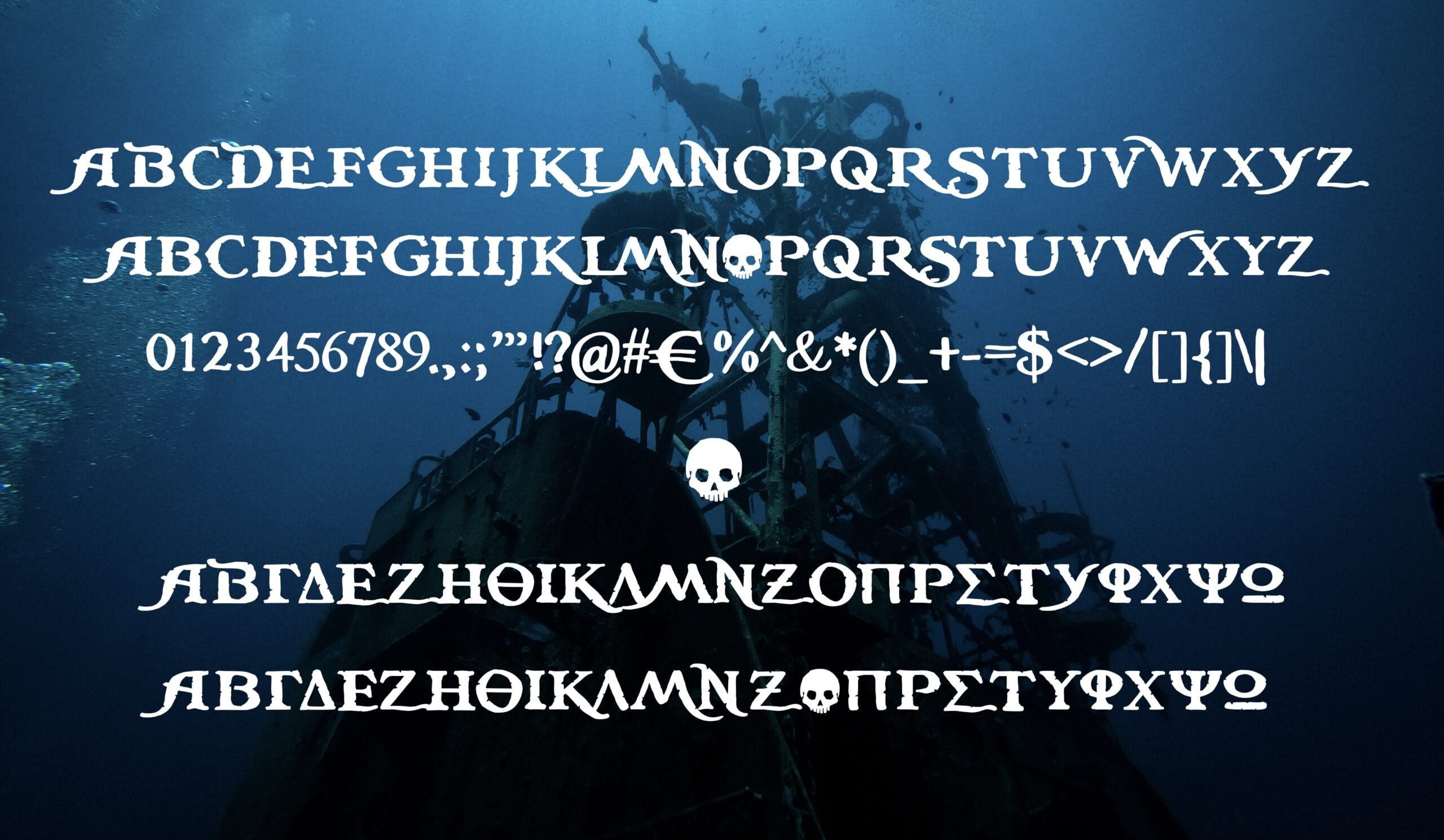 One of my very first fonts was a pirate themed one which I loved, but I didn’t know much about font making back then, so once in a while I revisit that old font and create something new. The “Rum is Gone” consists of uppercase, lowercase, numbers, special characters and Greek. It is supposed to be more “funny” compared to my other pirate-themed fonts. Cause after all this rum, surely follows the fun. And whatever may come, always blame it on the rum! (And oh yes, this is my own quote!) ;) Cheers!