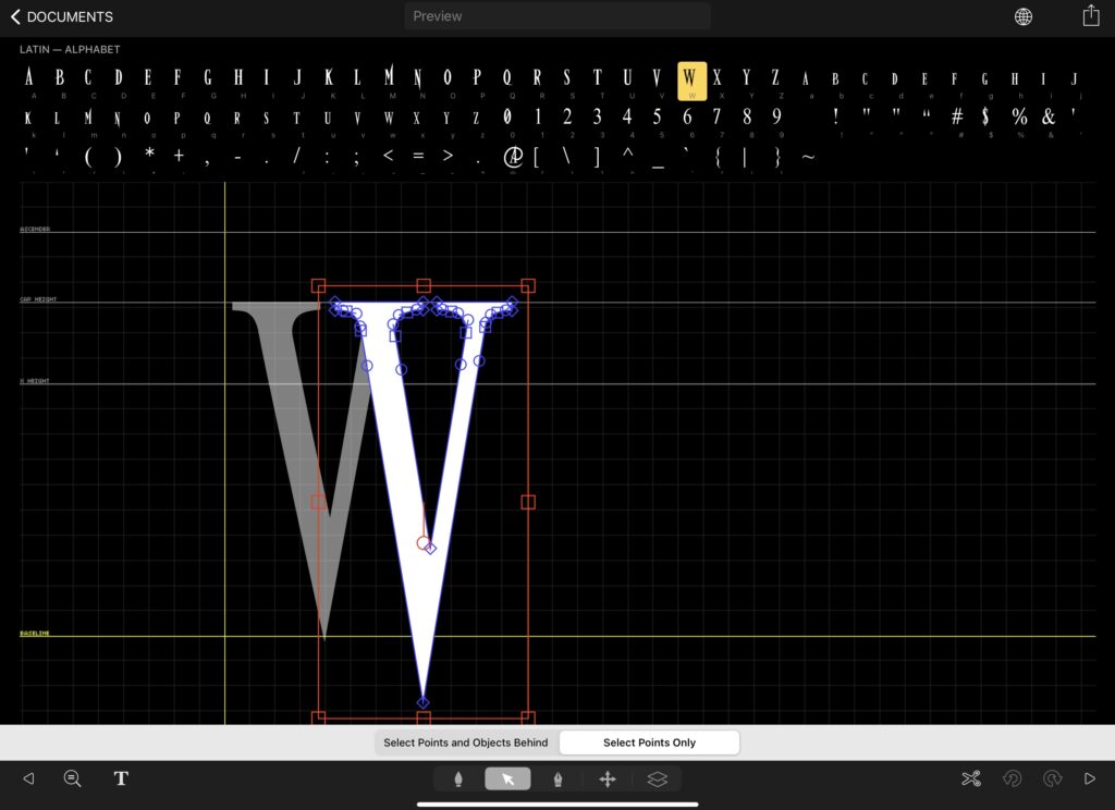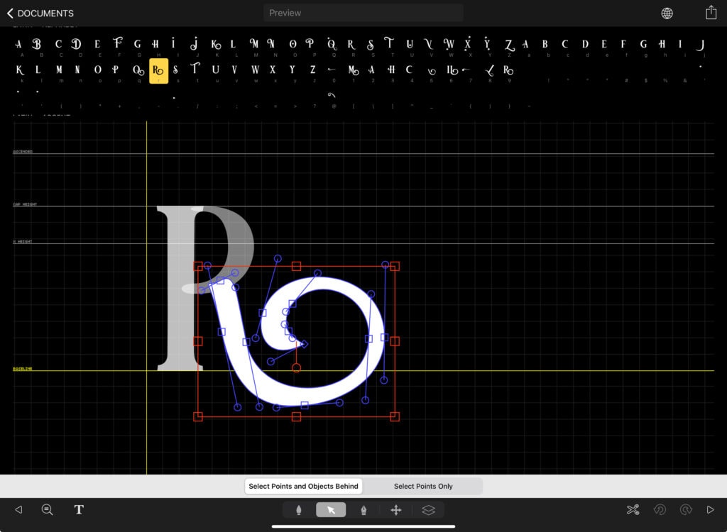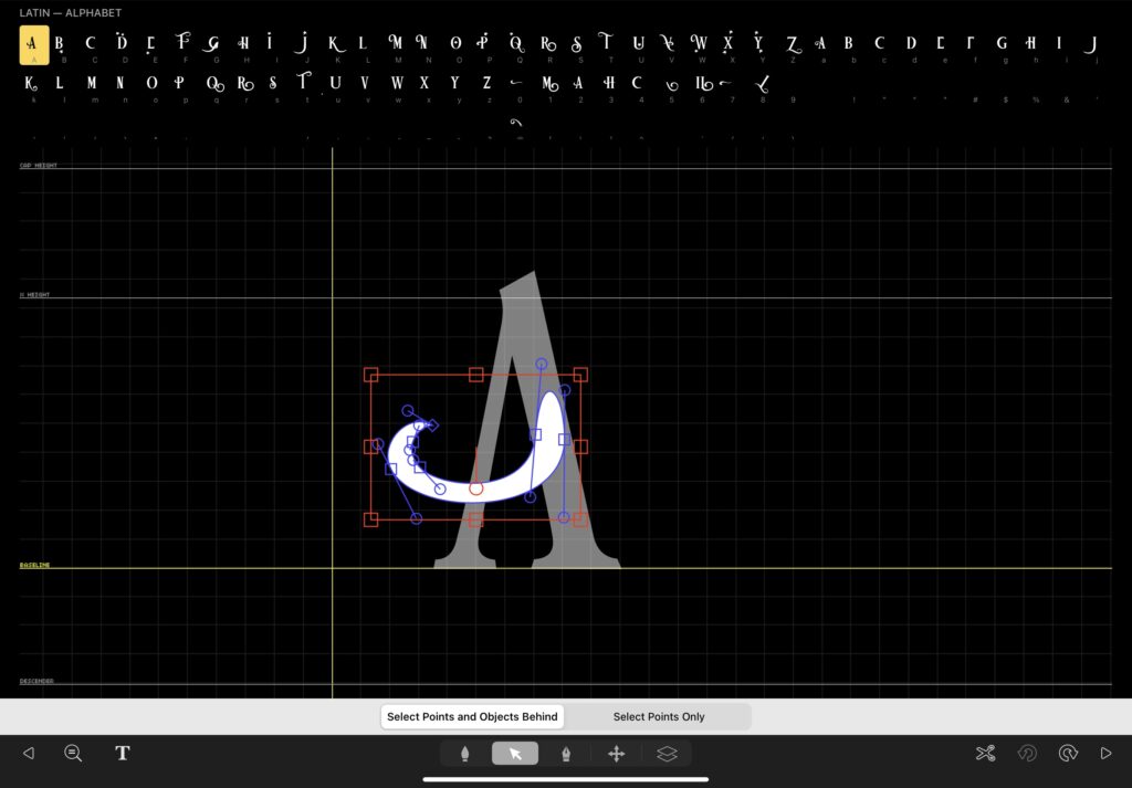 No precision, no snapping, no detailed grid, no rulers. It is impossible to tweak a point with precision, which once again is expected because iFontMaker is marketed as a hand-drawn fonts app. However I sometimes wish I had more control.
