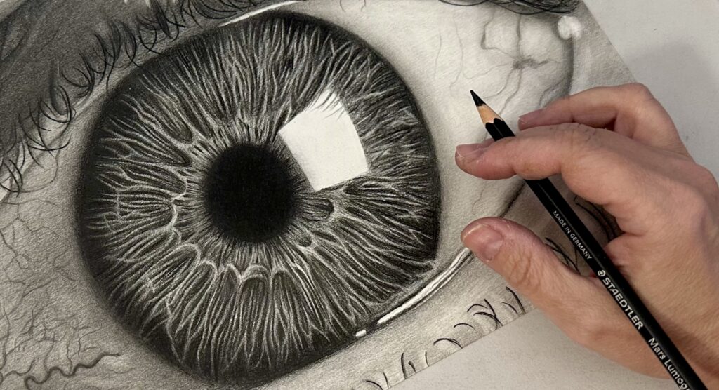 However I decided that the universe won’t beat me, damn you universe, this eye is for you. Eye see you! 😉 Oh and by the way, if you take a long break from drawing, I highly recommend starting with an eye like the one below. There’s a famous quote among visual artists: “There’s nothing more difficult than drawing the other eye”. Well… if you draw only one, there’s no problem I guess!