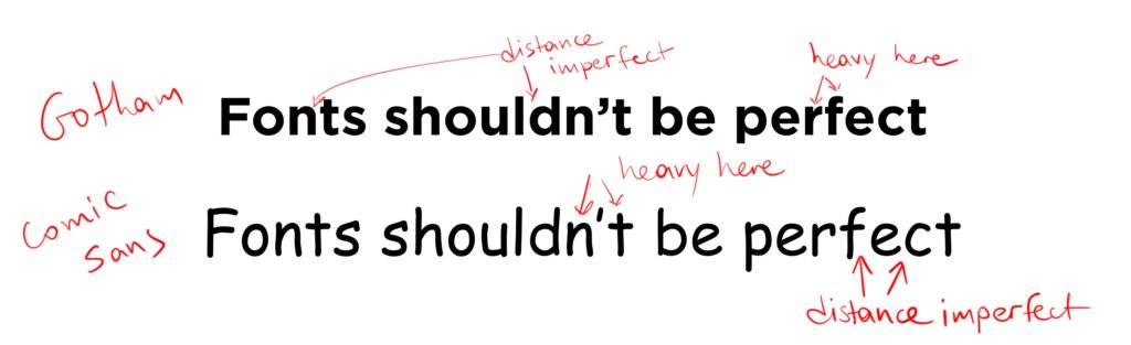 So it’s true, Comic Sans has some inconsistencies/imperfections when it comes to design. But the thing is that ALL fonts have flaws. Below I am comparing Comic Sans to Gotham, another (not-so-famous) font, and before you start making comments, let me tell you that Gotham is one of my favorite fonts of all time.