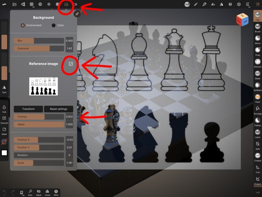 To load it in Nomad Sculpt, tap on the image tab, and click on reference.