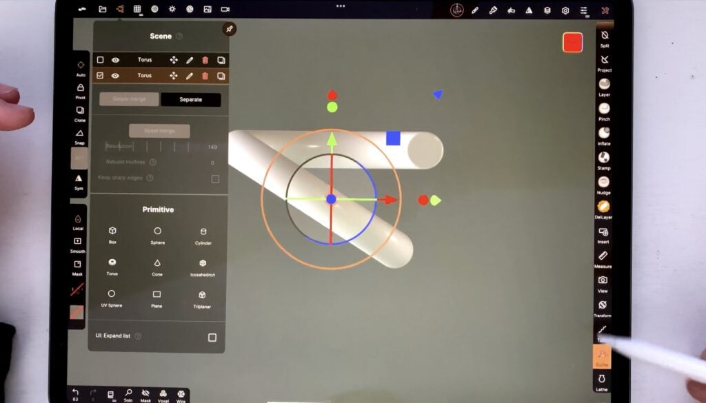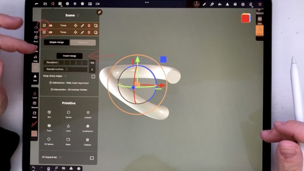 Then, I select both parts from the “Scene” menu, and tap “voxel merge”.