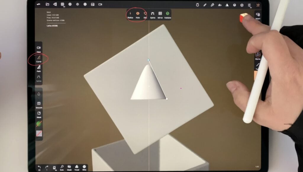 The box is done. Now I am gonna decorate it, making a ribbon-like thingy on the lid. You can leave it as is, or you can create the ribbon-ish design too, or you can make your own decoration! Anyways, I am beginning with the “lathe” tool on the right vertical menu, to create a pyramid like shape. I am making sure that ”hole” is on.
