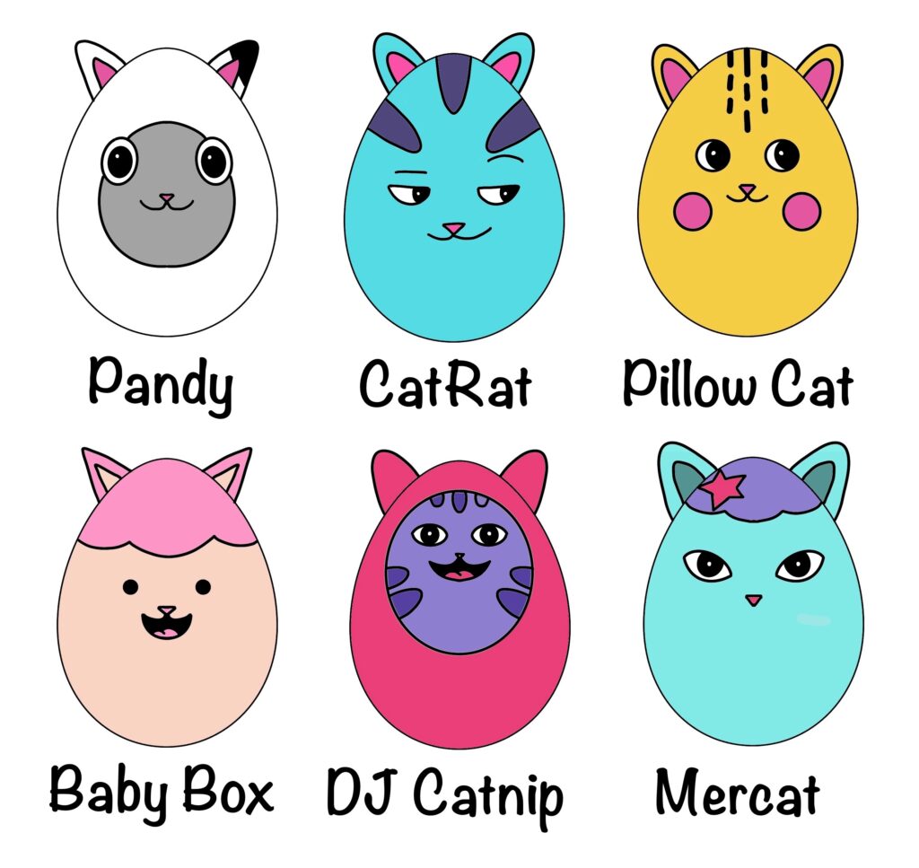 I painted the eggs free hand, but below I made a chart for you. This is approx how each cat should look on the curved surface of the egg.