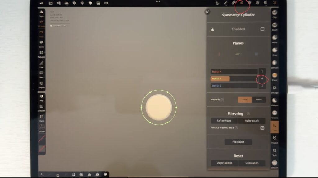Select Radial Y symmetry from the symmetry menu and type in “6”. Then cut a slice with the rectangular trim tool, as shown.