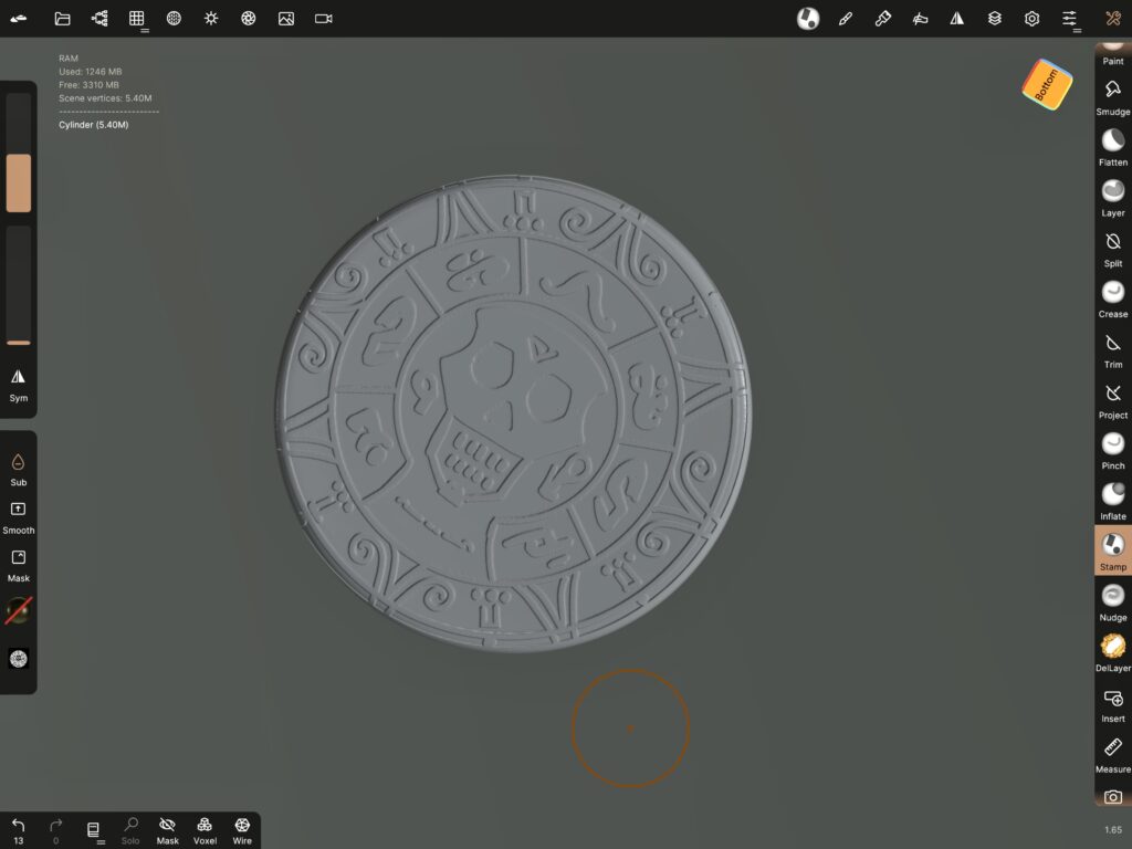It is not perfect, in fact this is the most un-perfect design I have EVER made. 🤣 For three reasons. 1) Lately I have come to realize that perfection is not the point 2) Unlike 2D, 3D calls for imperfection, only then it looks natural 3) The stamp tool in Nomad Sculpt is imperfect anyways. Intricate designs require way too many polygons. So it’s best to keep them relatively low in number (the polygons) and go for imperfection! Anyways, here’s the finished image for you, to load to Nomad Sculpt , if you are following this tutorial.