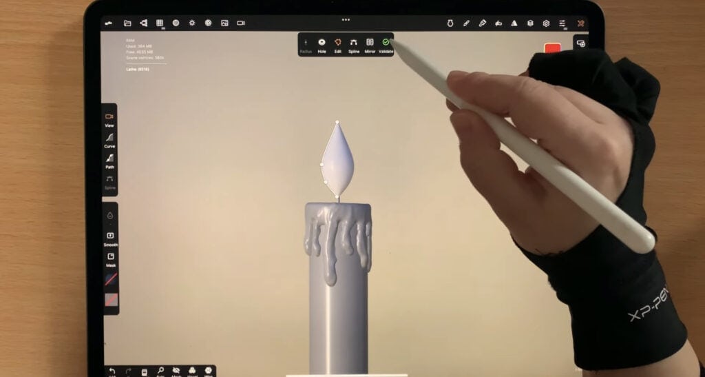 Anyways, I am starting off with my beloved ”lathe” tool, and I outline a flame shape.