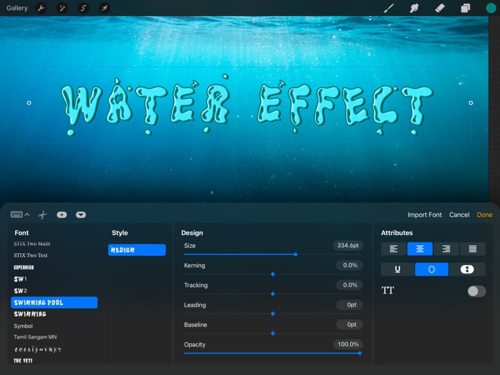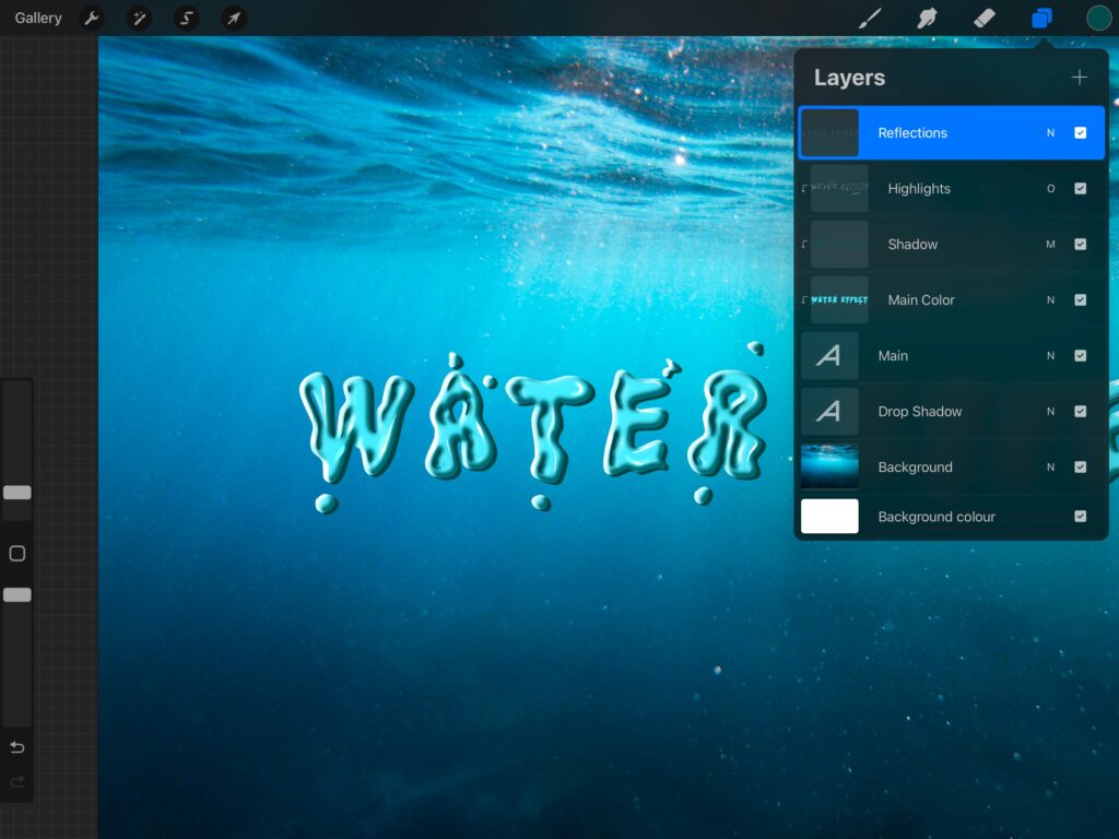 You got my point, I love procreate. However, for someone who started off with photoshop, procreate is a missing a few important functions. Yep text effects, I am talking to you! I really miss text effects oink procreate, but over the years I found ways to approximate them. Today I will be showing you how to create a water text effect, something many of you requested when I shared a liquid font banner the other day.