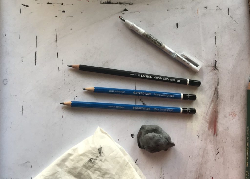 - Staedtler Mars lumograph b + 3b pencils. (No reason I used these exact grades, I normally grab whatever is readily available on my drawing desk. A combination of laziness and efficiency!)