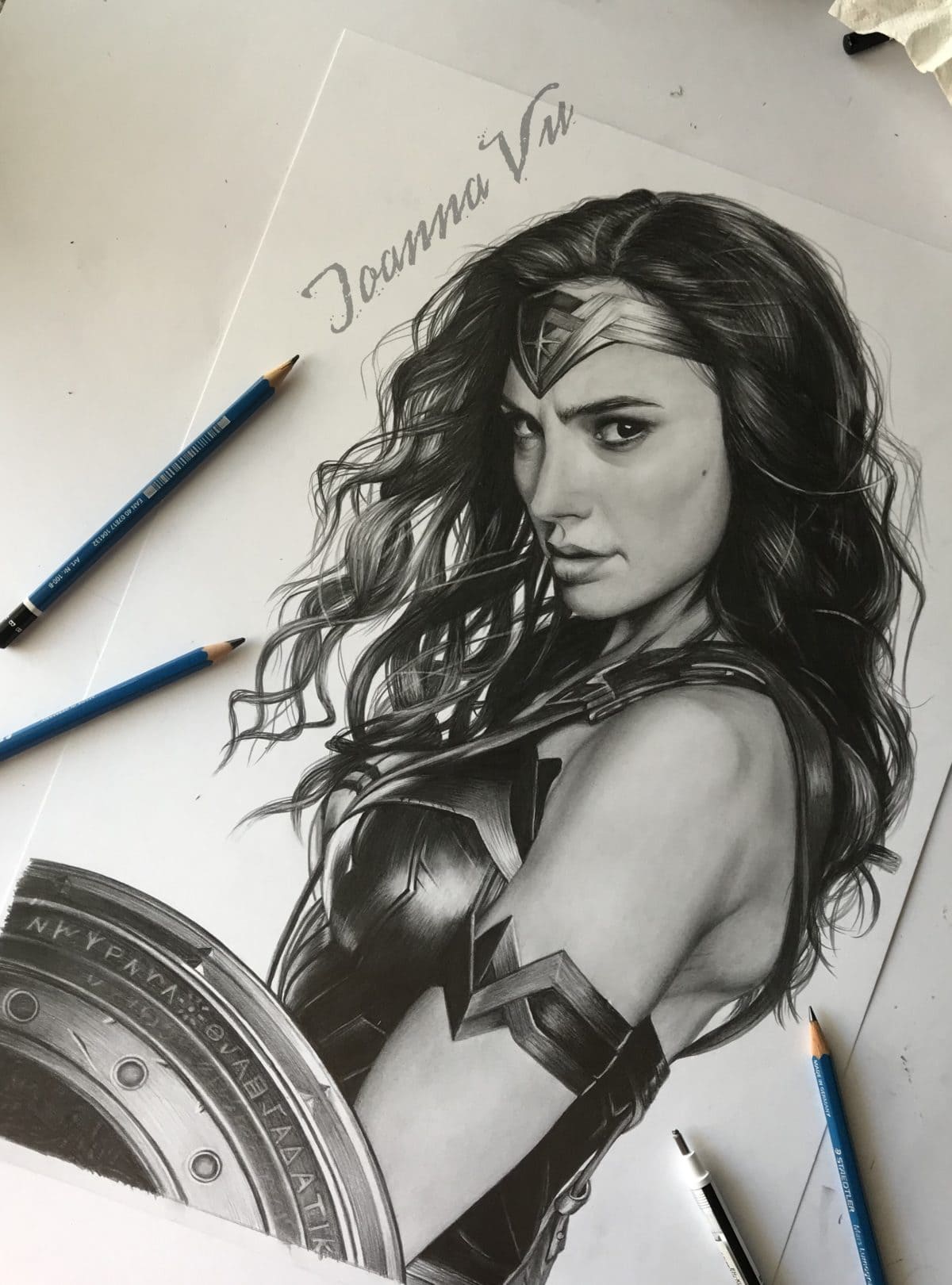 Back to my roots with graphite and a WonderWoman Drawing! I love colors but nothing compares to evoking emotions only with shades of black and white.