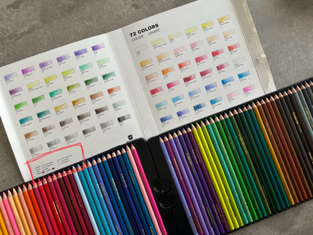 The fact is that Woomer pencils have been tested regarding lightfastness and their lightfastness is actually pretty good! I honestly couldn’t believe it. An unknown brand actually respects their target group, providing high quality materials, tested in a lab and passing the test. As soon as I saw their lightfastness chart (and the willingness to undergo a lightfastness test), I knew they were serious about their business.